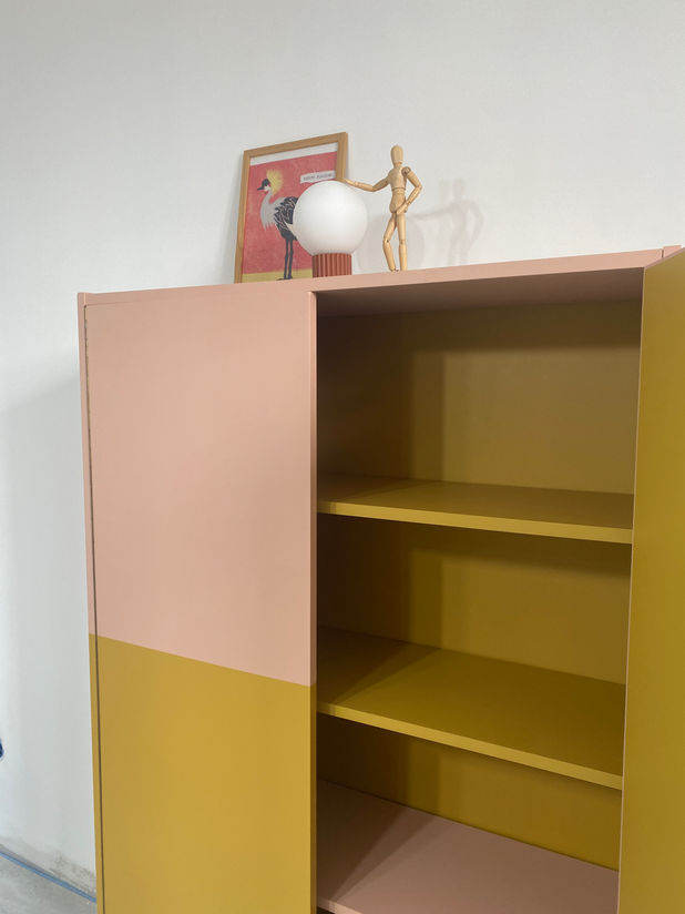 Cette petite armoire bi-goût est parfaite par sa taille et sa capacité de rangement. Le choix de ce duo rose pâle et jaune terre est audacieux et fera de ce meuble une pièce forte de votre intérieur. Avec son petit chevet assorti, on l'imagine facilement dans une chambre d'enfant mais dissociée, cette petite armoire peut facilement prendre place dans n'importe quelle pièce de la maison.
