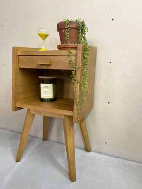 Cette jolie pièce chinée allie simplicité et caractère. Conçue en chêne massif elle garde des lignes franches et sobres dans cet esprit scandinave des années 60 qui matche toujours aussi bien. En table de chevet, meuble d'appoint ou bout de canapé, il s'harmonise facilement dans plusieurs pièces de la maison.